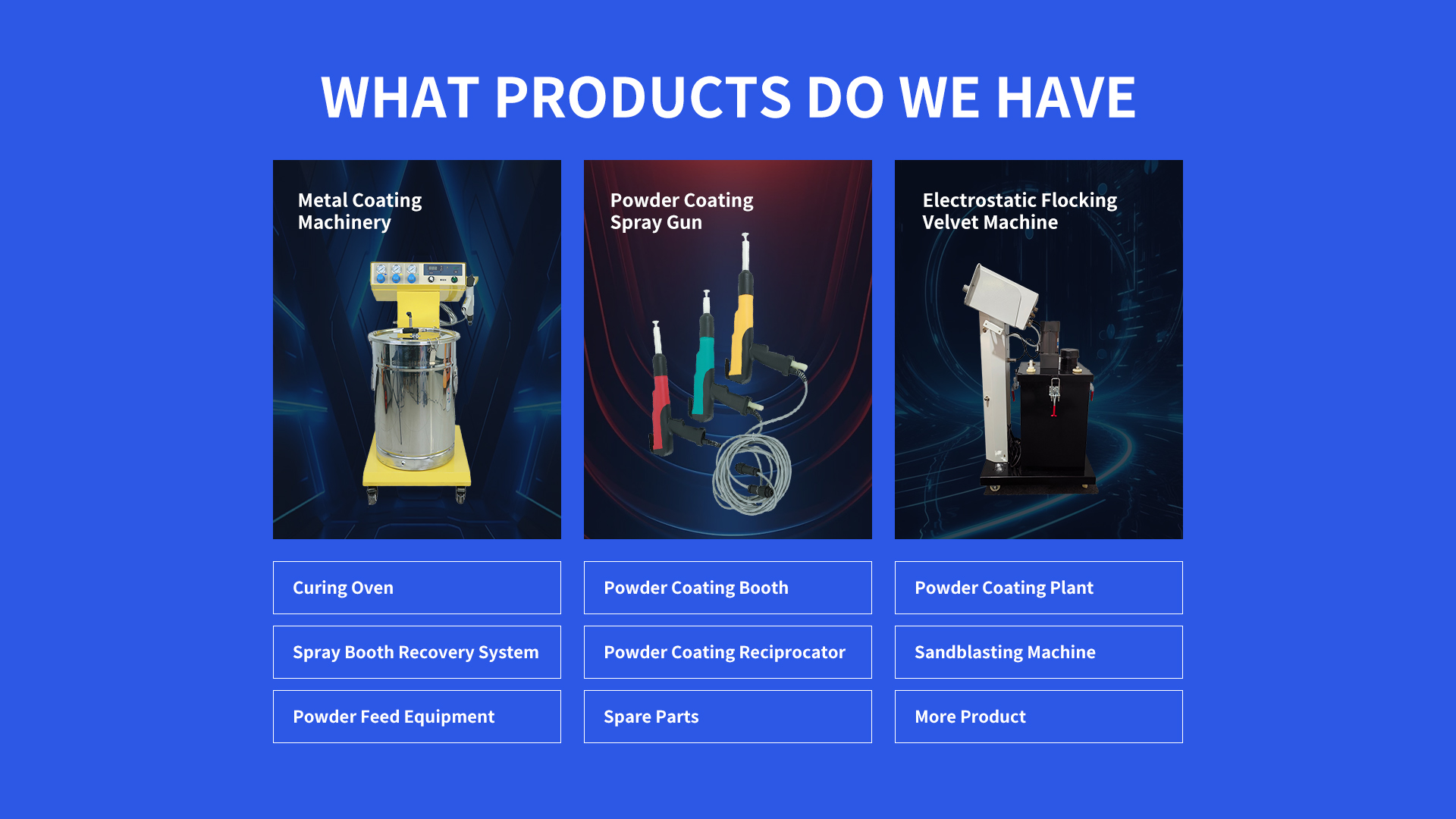 Powder Coating Gun Systems are widely used in industries such as automotive, furniture, electronics, and metal fabrication. They are ideal for coating automotive parts, household appliances, industrial tools, and architectural components.